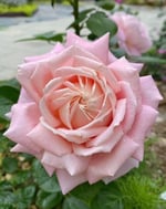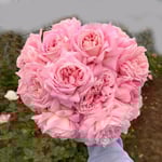 Amazing Grace, a vertical-growing shrub rose from Anne G. Cocker (Scotland, 1990), reaches 80–100 cm tall. It showcases 10–13 cm light pink, deeply cupped blooms with over 41 petals and a strong scent. This rose blooms continuously, resists blackspot and mildew, and tolerates rain. Ideal at ~30°C, petals scorch above 35°C. Its glossy leaves react to sprays, spotting from mite or mildew treatments. With thorny stems and narrow width, it thrives in sun but has short vase life.