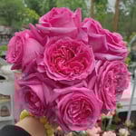 Experience the captivating beauty of Bernadette Lafont Rose, a stunning variety bred by Bernard Sauvageau in France. Named after the renowned French actress Bernadette Lafont, this rose mesmerizes with its large flowers boasting 50-60 petals in deep lotus pink, transitioning to purple in cooler weather and lighter in heat. Infusing the surroundings with a classic passionate aroma, Lafont blooms continuously throughout the year, with an abundance of bigger and more exquisite flowers in fall and winter. With its exceptional average rating and a height range of 28" to 35" (70 to 90cm), this hybrid tea rose adorned with fuchsia/magenta petals is an essential addition to your garden, offering a delightful fragrance and timeless allure. Suitable for USDA zones 6b to 9b, Lafont Rose invites you to indulge in its captivating presence.