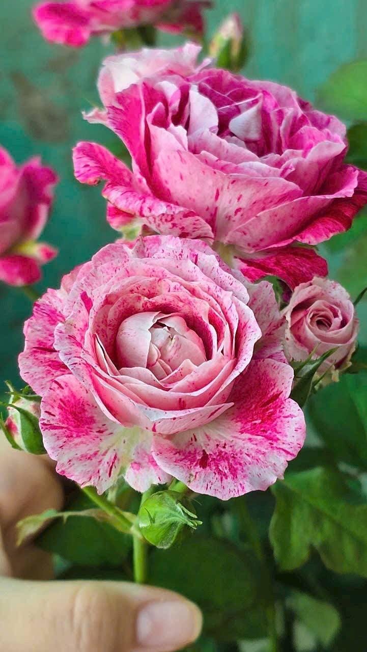 Color: Off-white or white petals with distinctive pink or fuchsia streaks, spots, or speckles.
