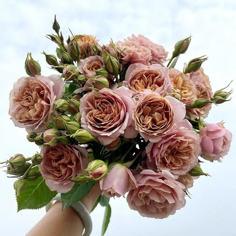 Brownish flowers with a diameter of 5-7 cm, Floribunda rose, repeats flowering throughout the seasons, clustered in many heads, prolific and diligent flowering, reaching a height of 50-80 cm, good disease resistance, elegant and dignified. a sport variety of Aoi. The flower color changes with the seasonal temperature, exhibiting vintage hues: pink in spring, orange in summer, and brown in autumn. The single flower period lasts for a week. It has excellent resistance, massive flower production, and rapid growth. The branches are soft with strong expansiveness.