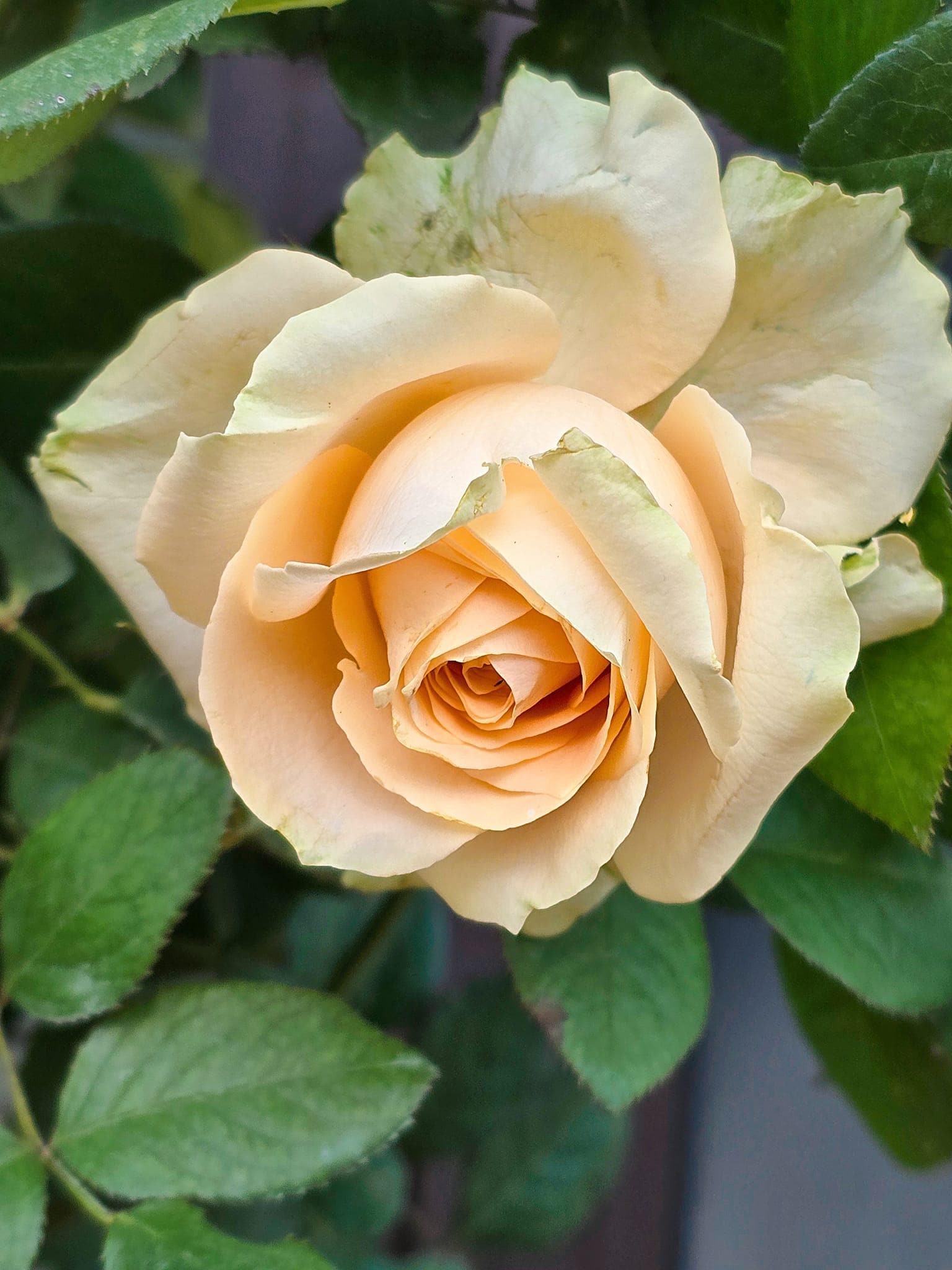 Avalanche Peach is an elegant Dutch hybrid tea rose discovered by Lex Voorn (now part of Dümmen Orange) in 2007, celebrated for its delicate peach-apricot blooms (8–10cm) with creamy outer petals that fade to white in heat. This compact shrub (60–100cm) features high-centered cupped flowers with scalloped edges and a subtle old rose fragrance, excelling in vase longevity (up to 10 days). While vigorous with disease-resistant dark foliage, its buds are prone to rot in prolonged rain.