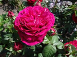 Gospel is a German variety from 1997. This crop was bred in the famous Tantau nursery by breeder Hans Jürgen Evers. The variety also has other names: TAN02733, TANlepsog, Proper Job, Meier Tann Ruti-Rose. This variety is a representative of the nostalgic rose series. Description of appearance and features A tea hybrid with an unusual name looks very elegant. This is the merit, mainly, of bright, double, cup-shaped flowers, which have a quartered shape, divided into 4 fairly symmetrical sectors. They are medium in size (9-12 cm in diameter), consist of 65-70 petals and bloom in a spiral. Buds are formed one by one at the ends of thick stems or in small inflorescences of 3-5 pieces. The flowers of the attractive German woman have a delightful color: the flower petals are cherry or purple. Depending on the weather conditions, the shade of the inflorescences can change: on cool days it can be deep burgundy, and on warm days it is dark purple. Because of this feature, the flowers of the noble plant are called "chameleons". Their aroma is strong enough, oriental, persistent, with pronounced fruity and honey notes. The buds of the culture are large, at first rounded, then, as they develop, they are tall, goblet. Gospel is a re-flowering variety, the flowers of which begin to bloom in the second half of June, stay on the bush for a long time and retain their shape.