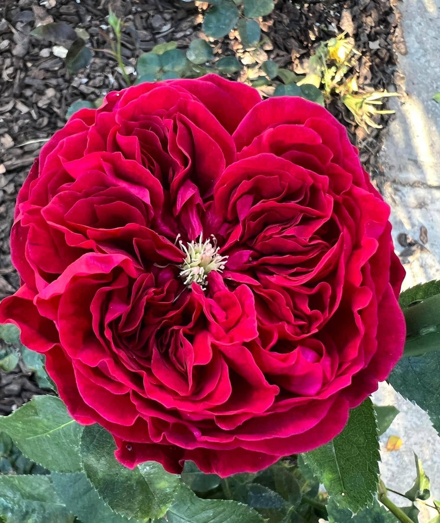 Tess of the d'Urbervilles® has the charming form and fragrance of an heirloom, but has the long blooming period of modern hybrids, from June to September. Bright crimson, deeply cupped, double flowers are lightly fragrant. Robust plants are bushy and spreading. May be grown as a shrub, about 4' tall and 3 1/2' wide, or trained as a short climber, 6 to 8' tall.