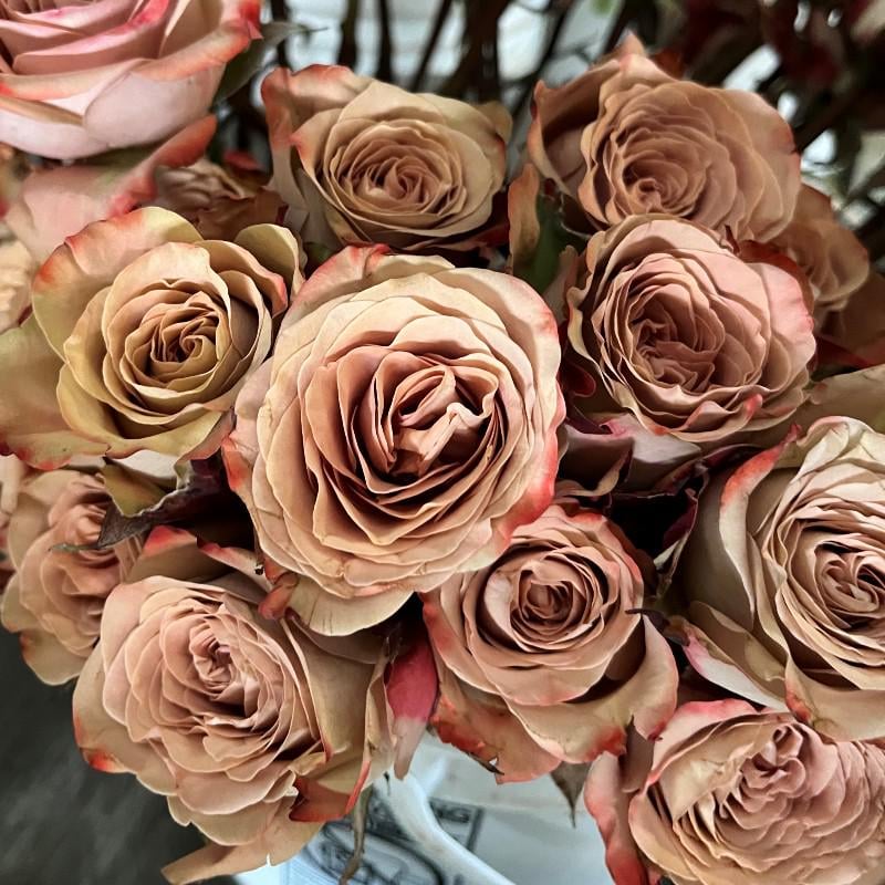 Cappuccino is an elegant hybrid tea rose introduced by German breeder Tantau in 2005, featuring uniquely warm-toned blooms that transition from creamy yellow to mocha-brown with 60-65 densely packed petals. Its cup-shaped, spiraling flowers (8-9cm) emit a subtle fruity-spicy fragrance and exhibit exceptional longevity—lasting up to 2 weeks in cool autumn. This compact shrub (50-70cm) boasts glossy foliage and moderate disease resistance, making it a refined choice for borders or containers despite needing winter protection.
