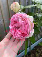 Cream, carmine-pink edges. Good fragrance. 55 to 60 petals. Average diameter 3-4″. Large, very full (41+ petals), cupped bloom form. Prolific.