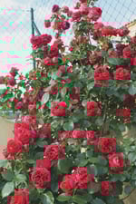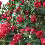 Add a bold statement to your garden with the Eden Climber® Red rose, a striking climber that showcases deep crimson blooms reminiscent of its namesake, the Eden Climber®, yet stands apart with its own unique beauty. With 100 to 110 petals, each large, full flower opens to an impressive 4.5-inch diameter, forming old-fashioned, cupped blooms that appear in small clusters throughout the season. Depending on your climate, this rose boasts a mild to strong fragrance, offering a delightful sensory experience.