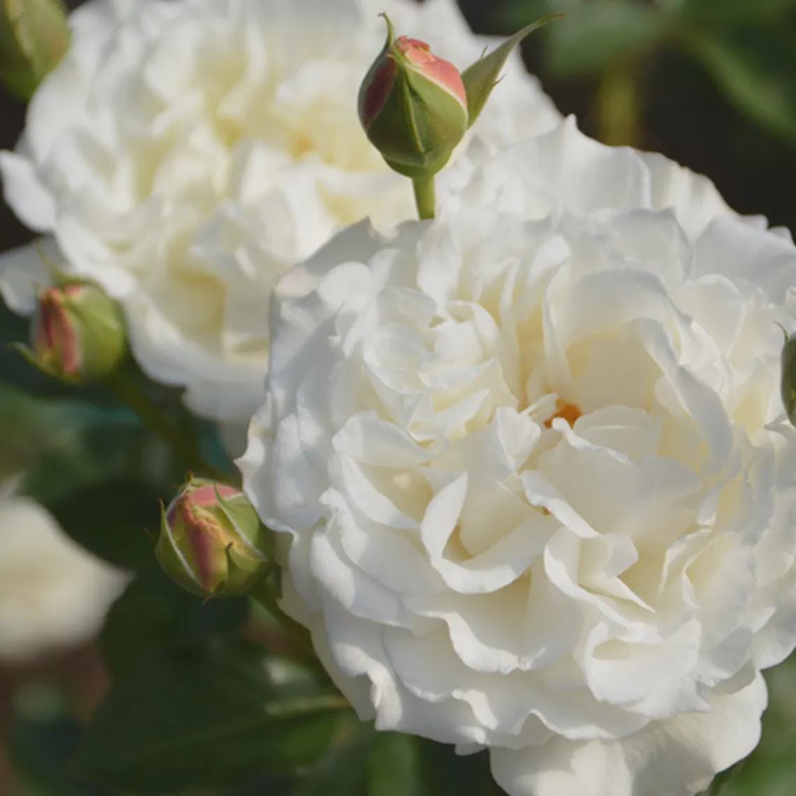 Sur la Neige, meaning “on the snow” in French, is an elegant white shrub rose that exudes timeless beauty and romance. With full, ruffled blooms and a strong, classic rose fragrance, it brings purity and grace to any garden or floral arrangement. Its upright growth and repeat blooming make it ideal for both landscape and cut flower use.