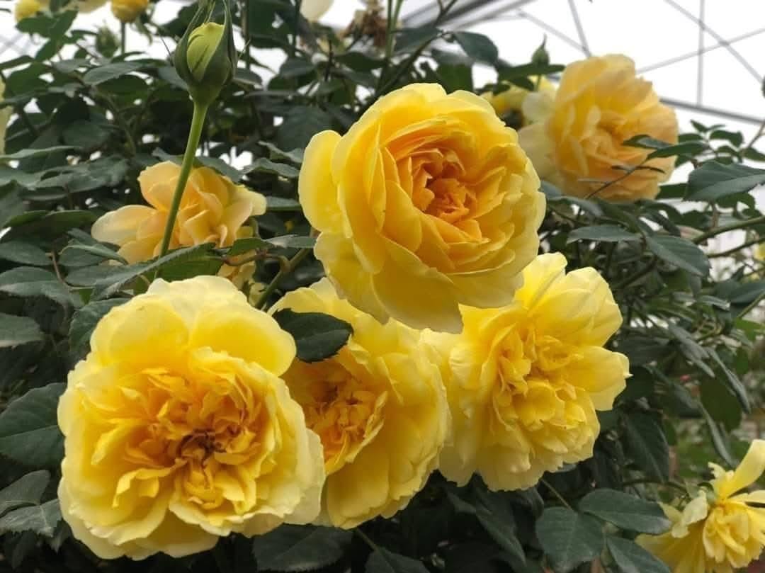 A reliable shrub rose that produces an abundance of lightly fragrant rich yellow-gold flowers throughout the season on a nice and compact plant, disease resistant; all roses need full sun and well-drained soil